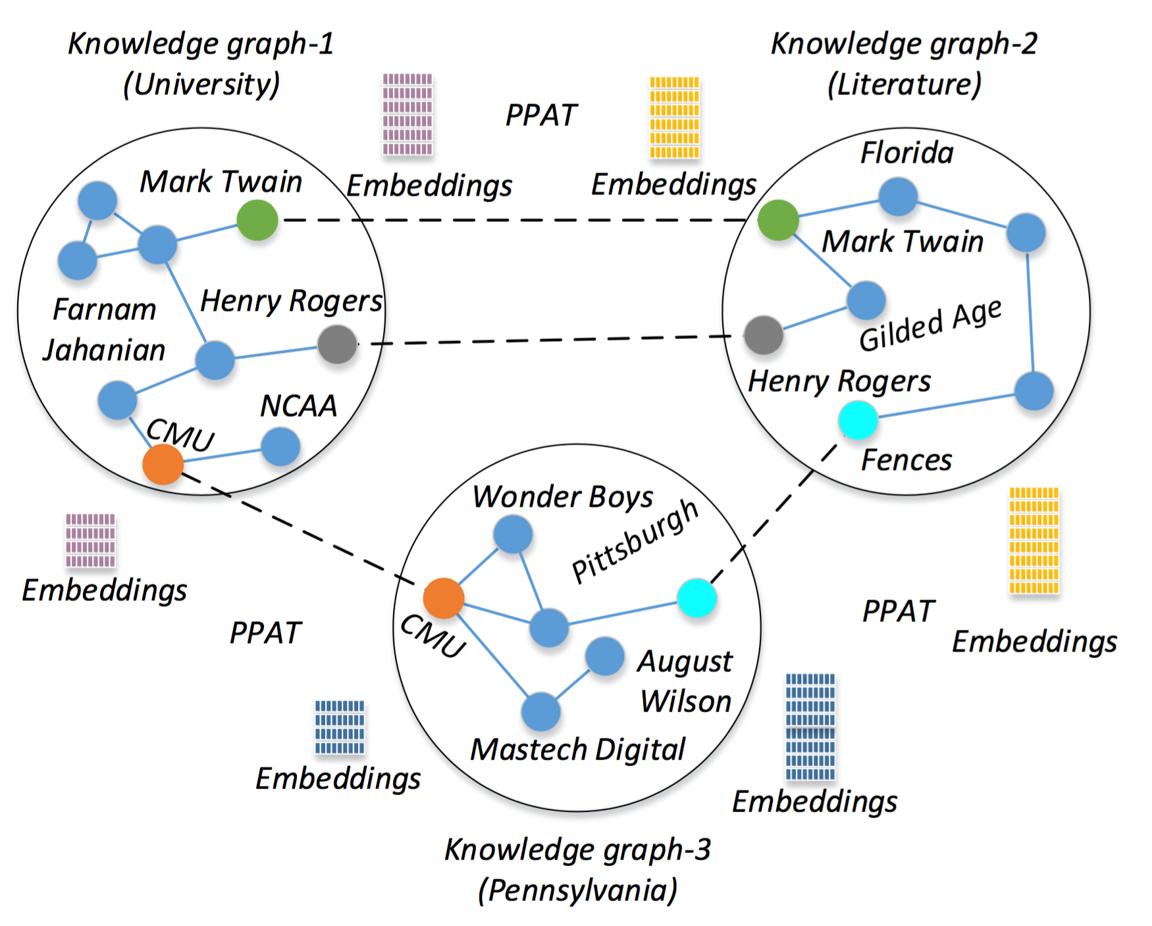 Hao Peng*, Haoran Li*, Yangqiu Song, Vincent Zheng, Jianxin Li CIKM 2021 (Oral) [ Code ] [ Paper ] We propose a novel decentralized scalable learning framework, Federated Knowledge Graphs Embedding (FKGE), where embeddings from different knowledge graphs can be learnt in an asynchronous and peer-to-peer manner while being privacy-preserving. |