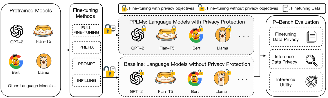 Haoran Li*, Dadi Guo*, Donghao Li*, Wei Fan, Qi Hu, Xin Liu, Chunkit Chan, Duanyi Yao, Yuan Yao, Yangqiu Song. ACL 2024 (Oral). [ Code ] [ Paper ] In this paper, we present PrivLM-Bench, a multi-perspective privacy evaluation benchmark to empirically and intuitively quantify the privacy leakage of LMs. Instead of only reporting DP parameters, PrivLM-Bench sheds light on the neglected inference data privacy during actual usage. In addition, we integrate PEFT into PrivLM-Bench. |