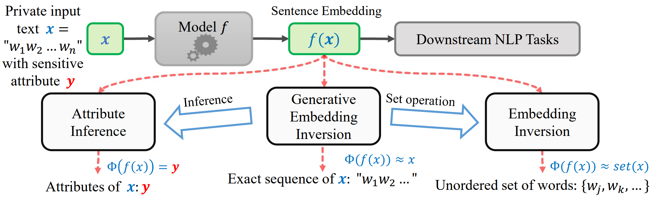 Haoran Li, Mingshi Xu, Yangqiu Song Findings of ACL 2023 [ Code ] [ Paper ] In this work, we further investigate the information leakage issue and propose a generative embedding inversion attack (GEIA) that aims to reconstruct input sequences based only on their sentence embeddings. |